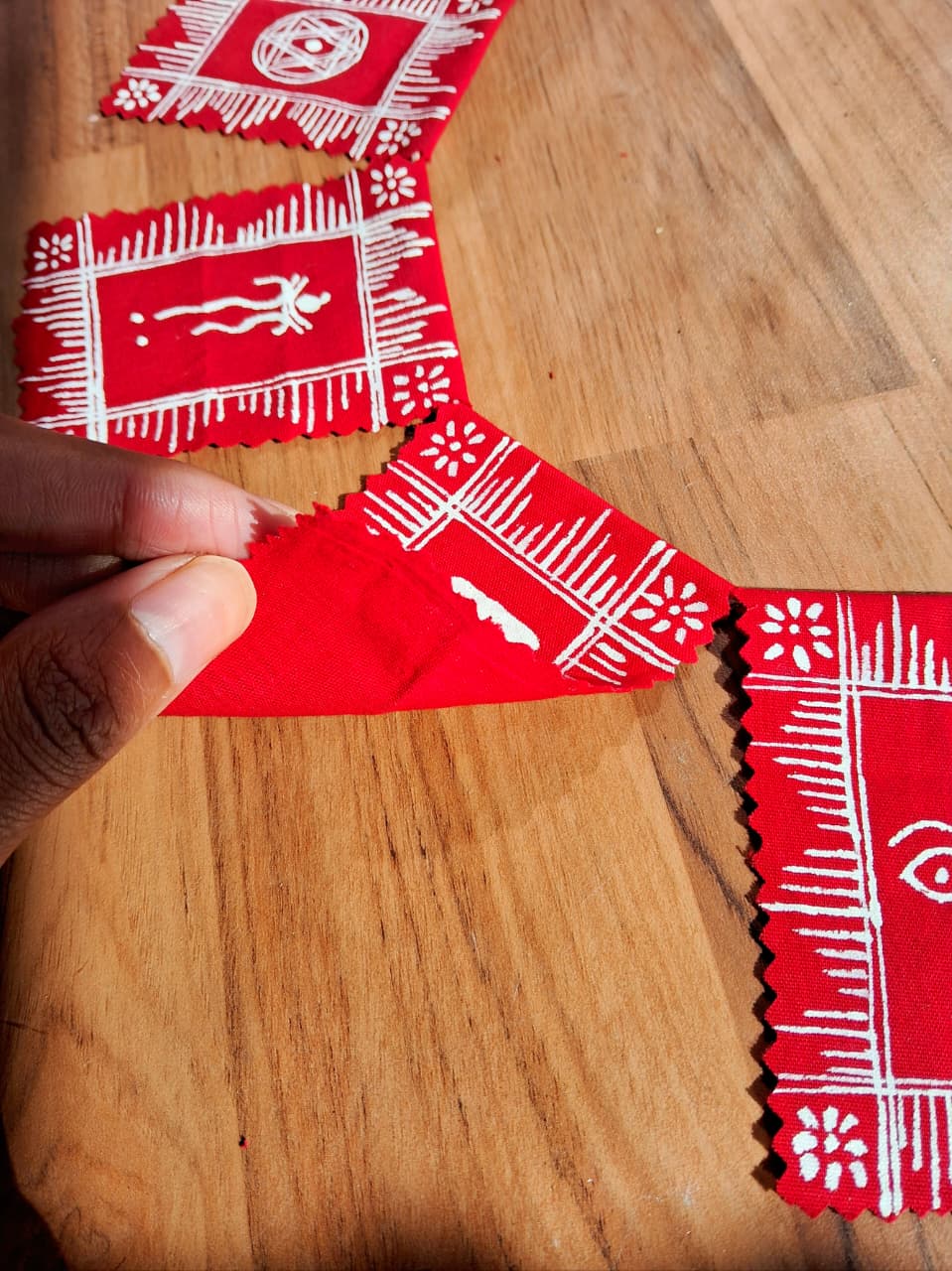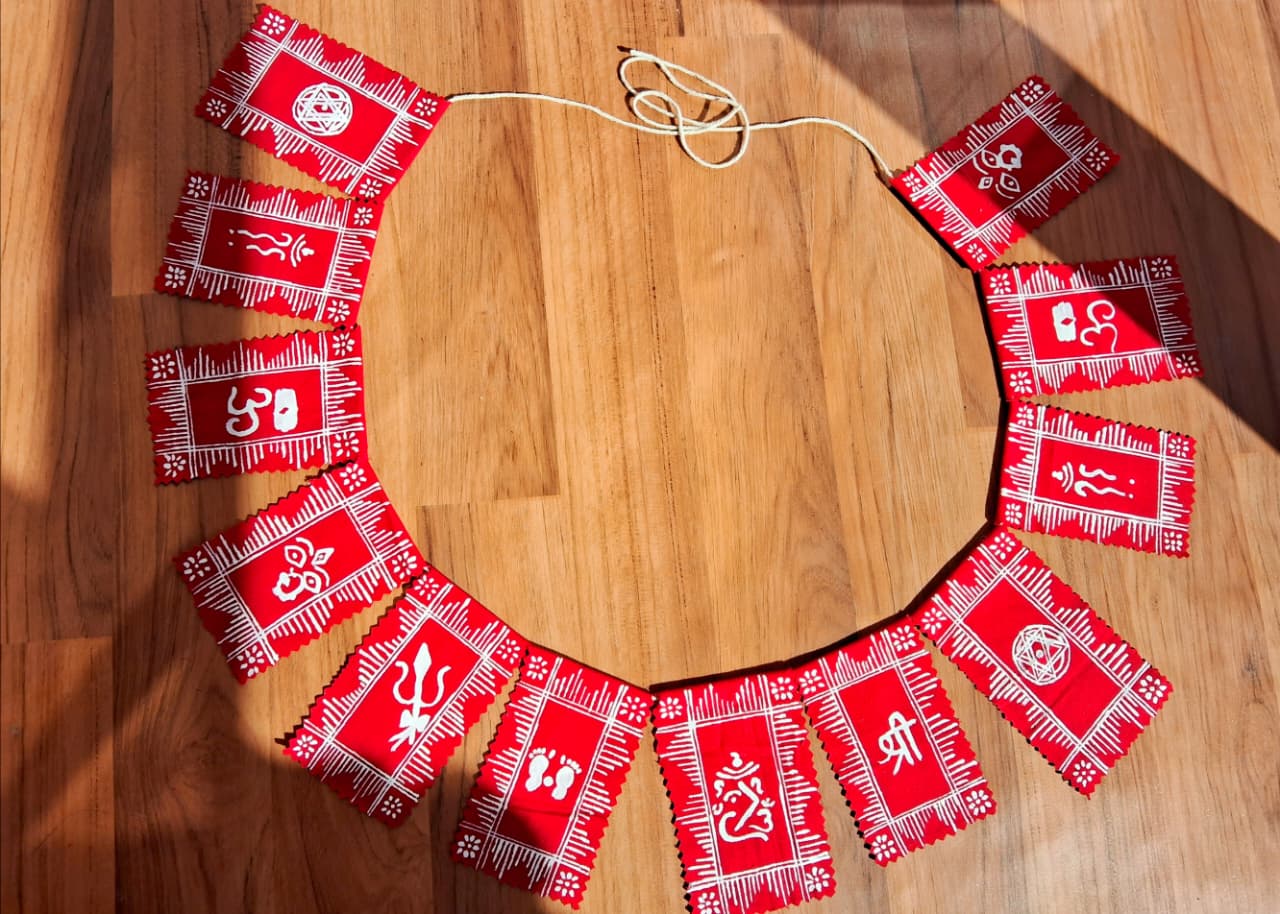 Bring home the traditional charm of Uttarakhand with this Handpainted Aipan Toran, crafted on premium cotton fabric and detailed with authentic red-white Aipan motifs. Each toran is fully handmade using acrylic colors, making it a unique piece of cultural home décor.